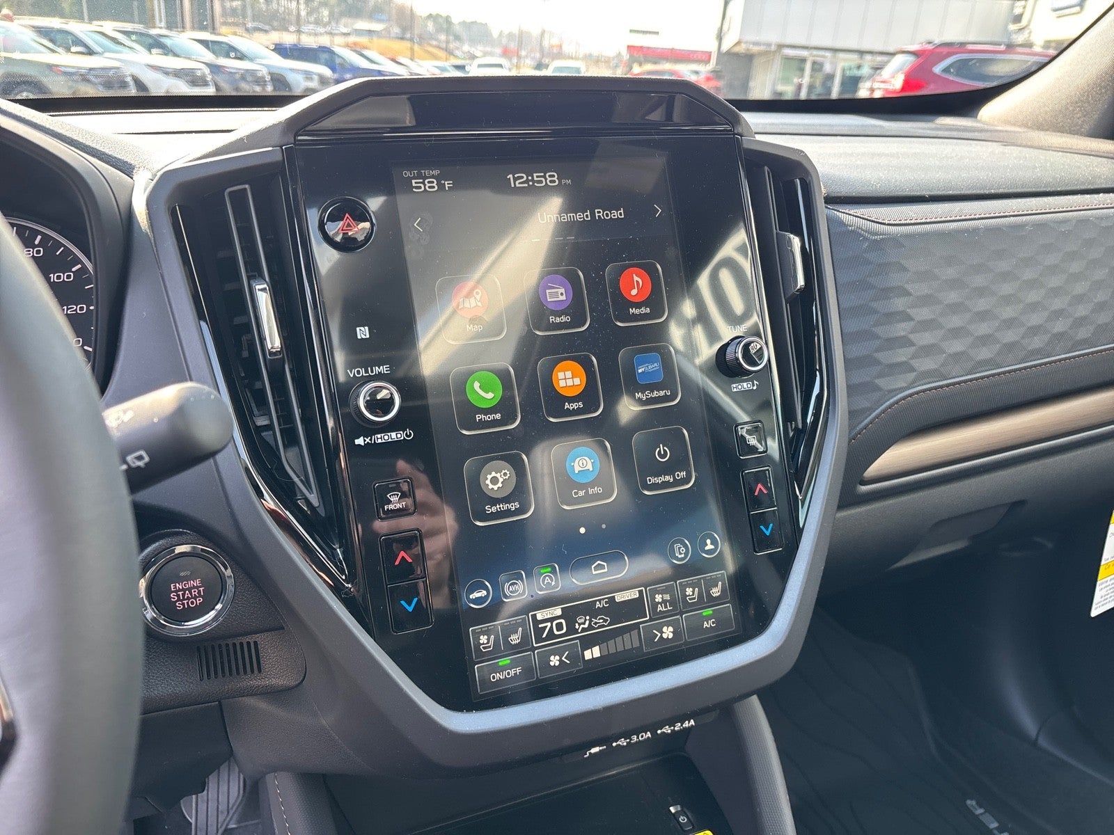 - Radio: Subaru 11.6" Multimedia Navigation System -inc: valet mode, integrated center information display, AM/FM stereo HD Radio, multi-touch gesture high resolution display screen, voice activated controls, voice activated navigation, Bluetooth® audio streaming and hands-free phone connectivity w/SMS text messaging (refer to Subaru.com for cellphone compatibility), TomTom navigation software w/what3words, iPod control capability, smartphone integration: Android Auto and Apple CarPlay w/full screen view and wireless connection, SiriusXM satellite radio w/360L (free 4-month trial subscription included), USB and Over The Air (OTA) audio system update, USB and Map Over The Air (MOTA) TomTom navigation system update (3 years free map updates), steering wheel controls, harman/kardon speaker system w/11 speakers and 576 watt equivalent maximum output amplifier, 3.5mm auxiliary input jack and roof mounted audio, satellite antenna and SiriusXM Travel Link (4 months free trial included/subscription required after)