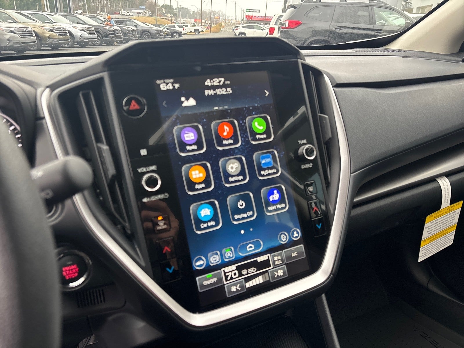- Radio: Subaru 11.6" Multimedia Plus System -inc: valet mode, AM/FM stereo, HD Radio, multi-touch gesture high resolution display screen, voice activated controls, Bluetooth® audio streaming and hands-free phone connectivity, Bluetooth® hands-free SMS text messaging connectivity, iPod control capability, smartphone integration: wired and wireless Android Auto w/full screen view, wireless Apple CarPlay w/full screen view and wireless connection, USB and Over The Air (OTA) audio system update, audio system and Bluetooth® steering wheel control switches, 6 speakers (2 dash panel tweeter, 2 front door, 2 rear door), illuminated 3.5mm auxiliary input jack, illuminated USB A and C input charge ports, roof mounted satellite and connected services, roof mounted black antenna, connected services operation indicator, SOS emergency assistance (red button) and ehanced roadside assistance (blue i-button)